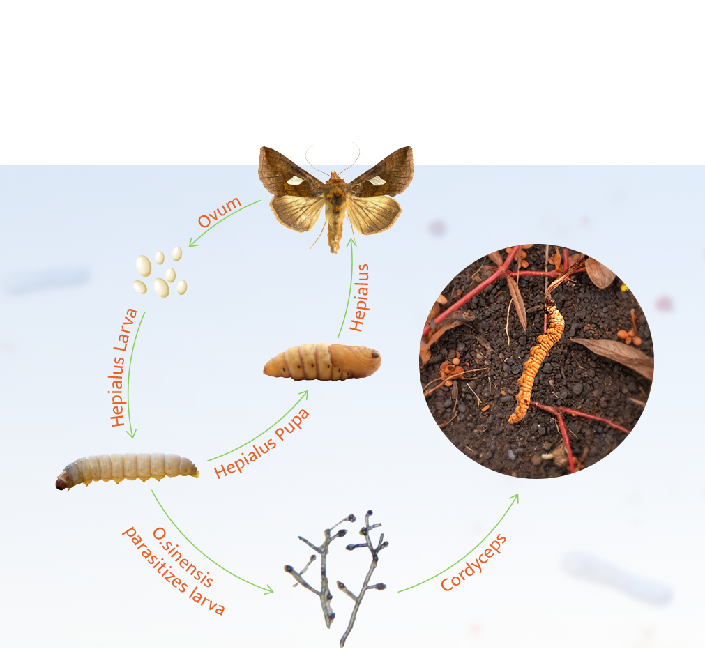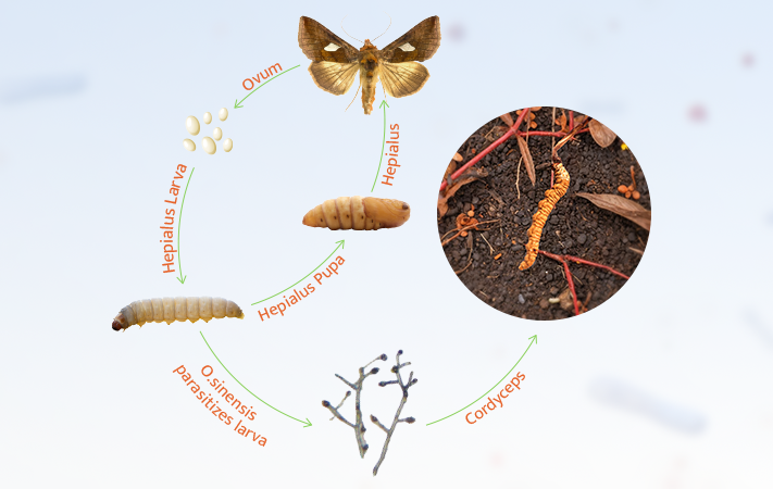 naturally grows on ghost moths (family Hepialidae) and belongs to the Cordyceps